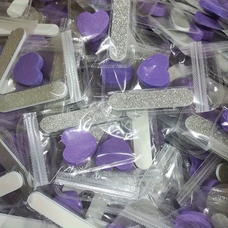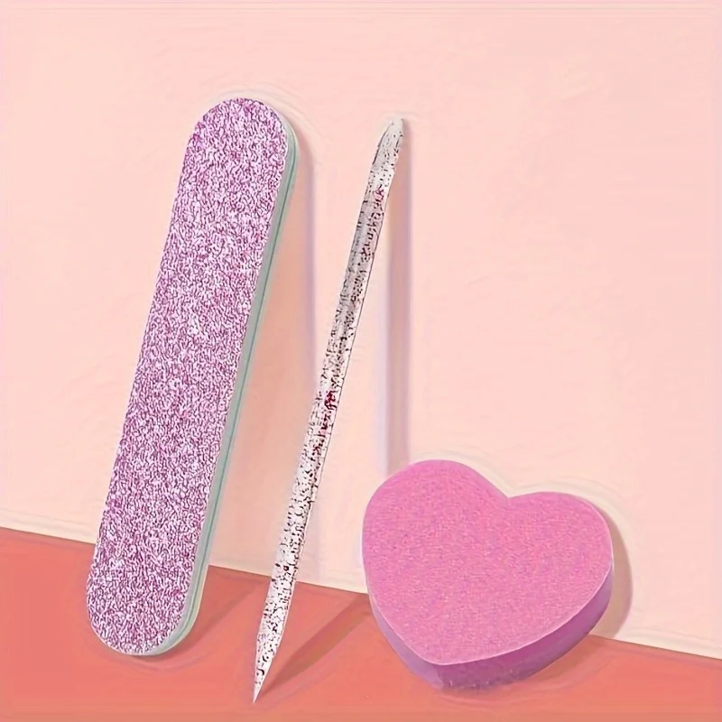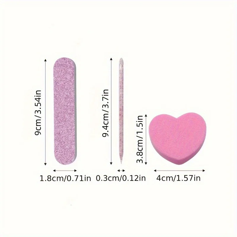 12 piece set of pink glitter nail care kit - heart-shaped buffer, crystal rod, a