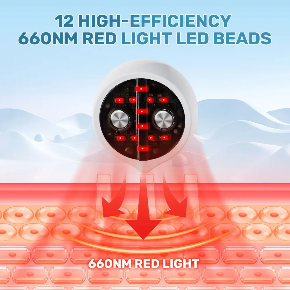 1.This beauty device is thoughtfully equipped with 12 high-efficiency 660nm red light LED beads, capable of penetrating deep into the skin to promote collagen production, which helps improve skin laxity, even out skin tone, reduce dark spots and blemishes, diminish fine lines, and enhance metabolism.