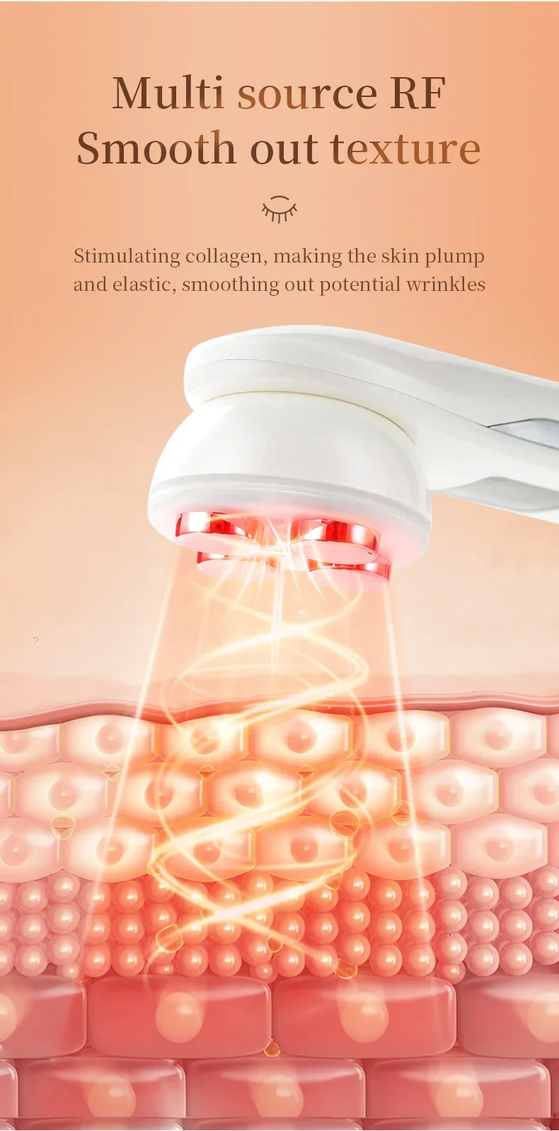 Electric muscle stimulation function: EMS is a low frequency current. When you use the microcurrent face machine, it can activate the skin cells and stimulate collagen contraction and recombination, train muscles, reduce face, restore skin smoothness and muscle flexibility, and develop muscle strength. The RF wireless face machine makes your facial skin elastic, smooth and firming.