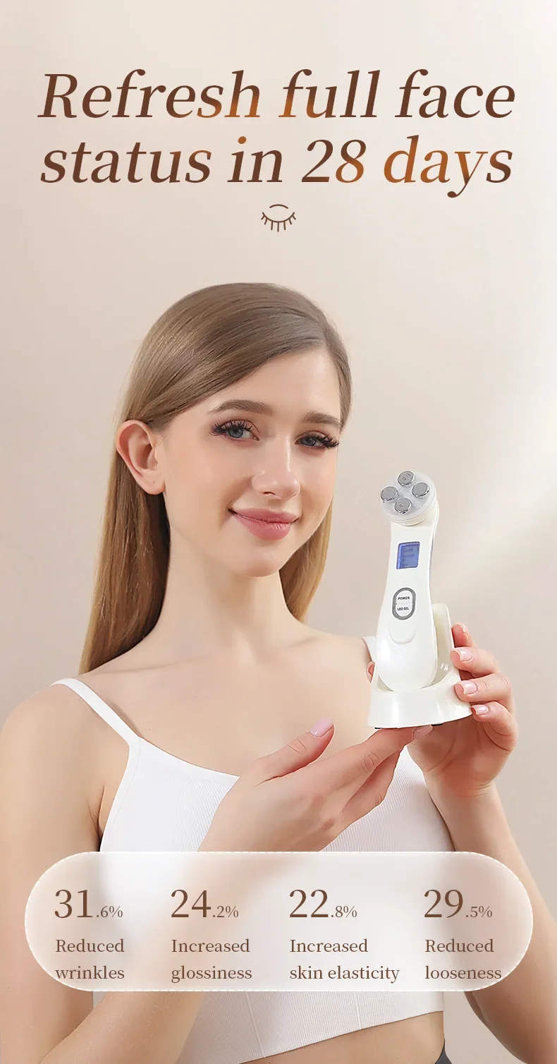 5-in-1 face tightening machine: the RF diver machine (will not vibrate or heat) can solve a variety of skin problems. Beauty device can remove wrinkles, brighten skin, reduce acne, tighten face, reduce dark spots, reduce face and lead skin care essence. Helps you increase the elasticity of the skin and stay young. Whether you are at home, office or travel, you can use it very conveniently, it is very small, portable and rechargeable.