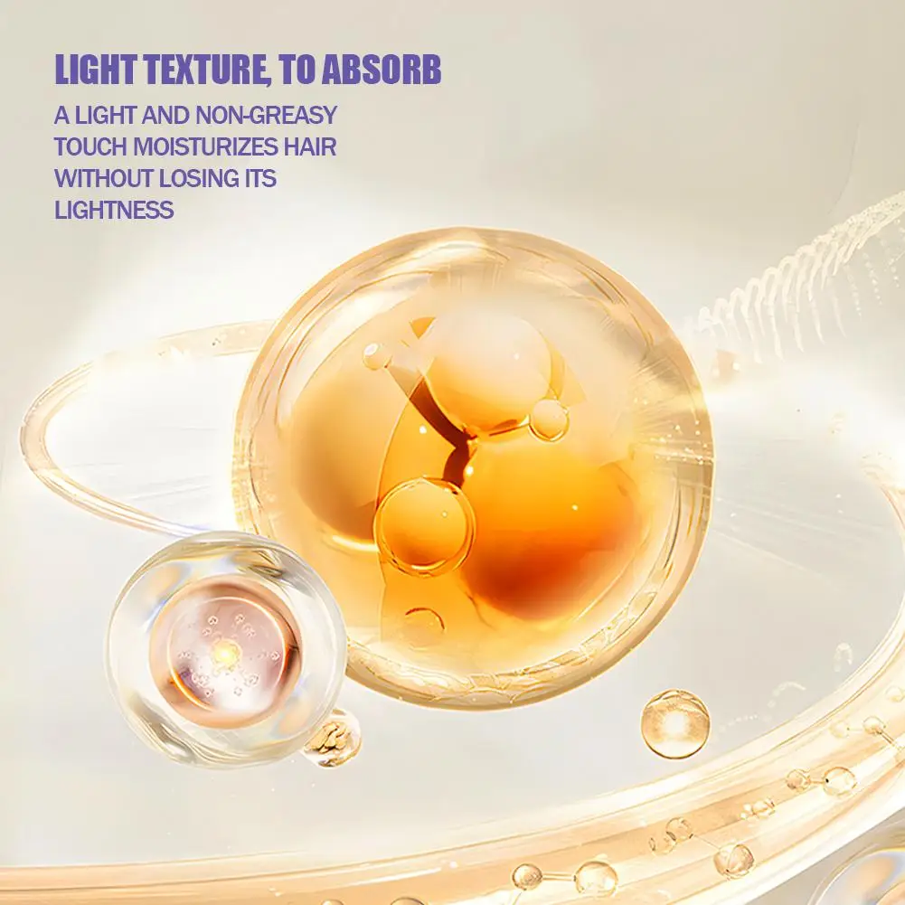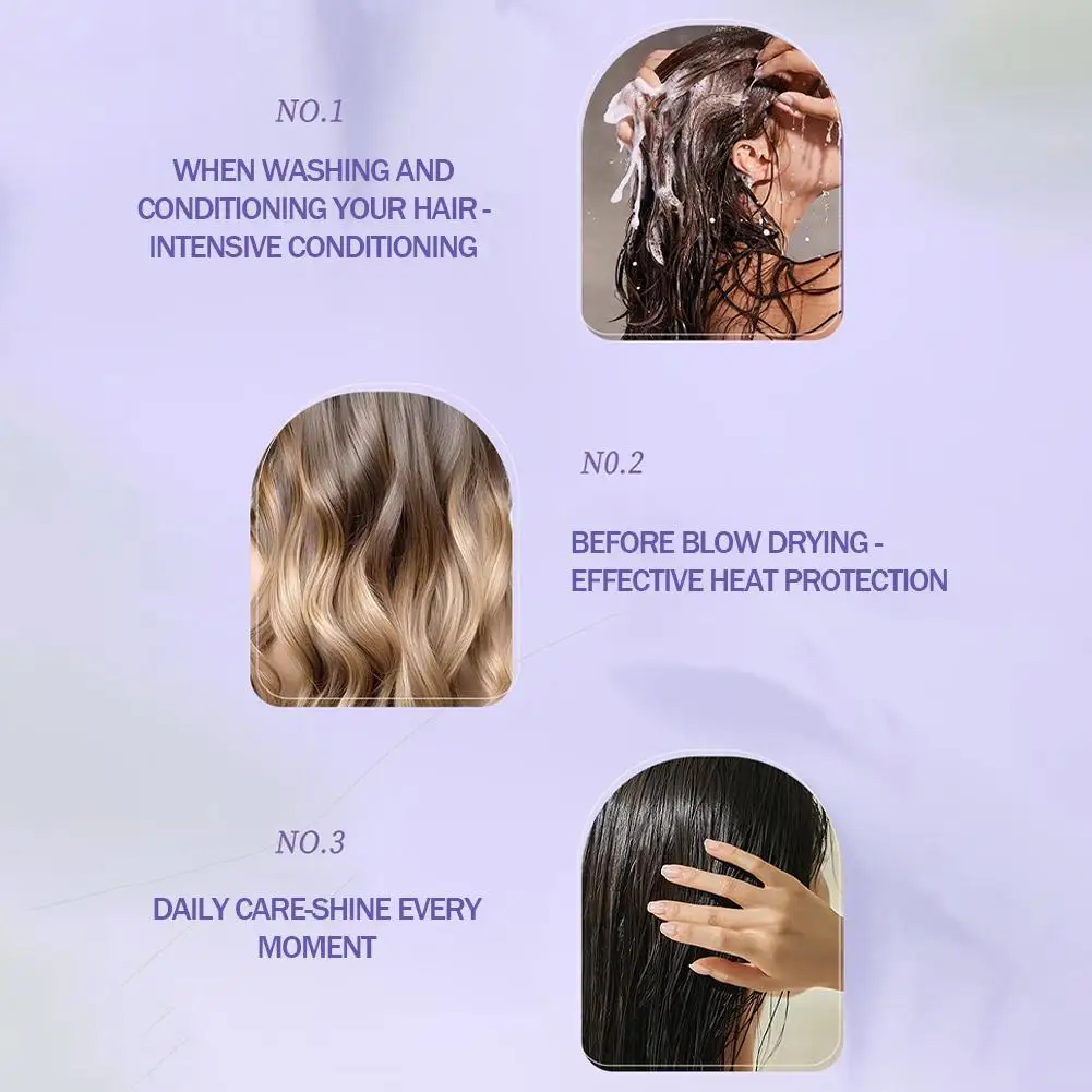 Blow wet hair to 60% dryness, directly apply essential oil to massage the hair, and enjoy the shine of the hair all day.
