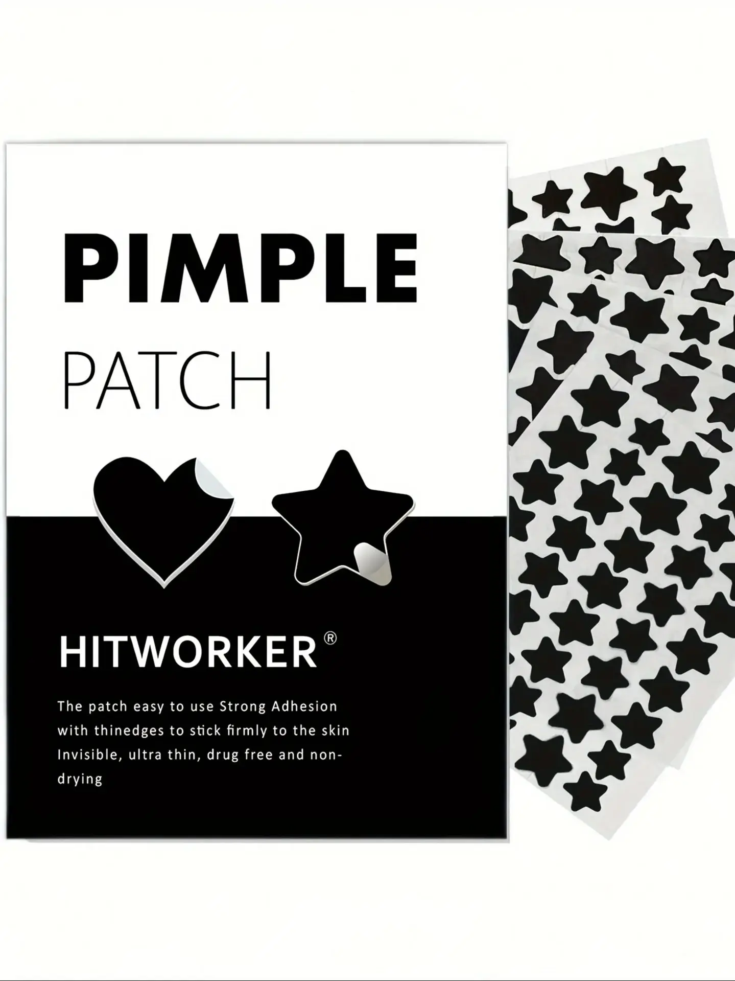 [Hydrocolloid Face Zit Patches] 200 Count Acne Patch Pimple Patch, Black Heart S