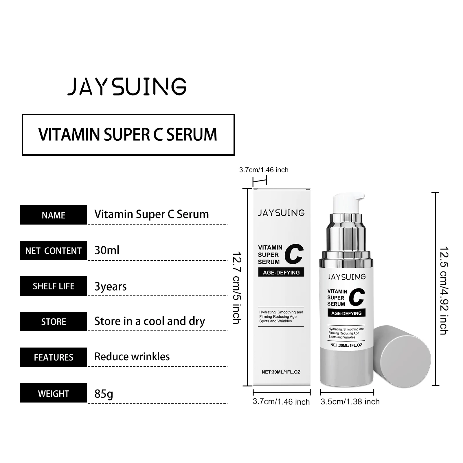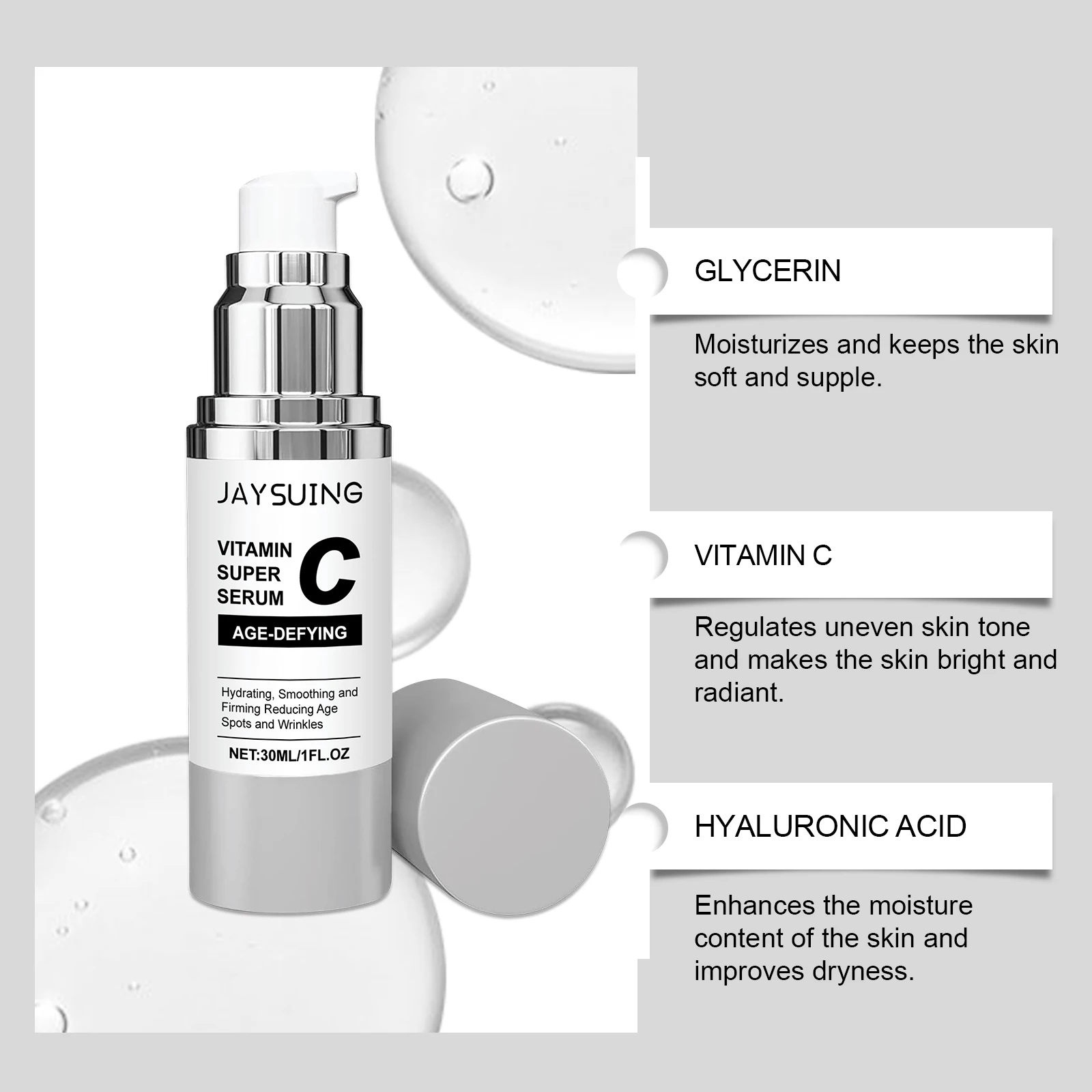 JAYSUING Vitamin C Serum for Face Anti-Aging with Hyaluronic Acid Brightening Serum Improve Dark Spots Firms Fine Lines Wrinkles Skincare 30ml/60ml/90ml(Optional)