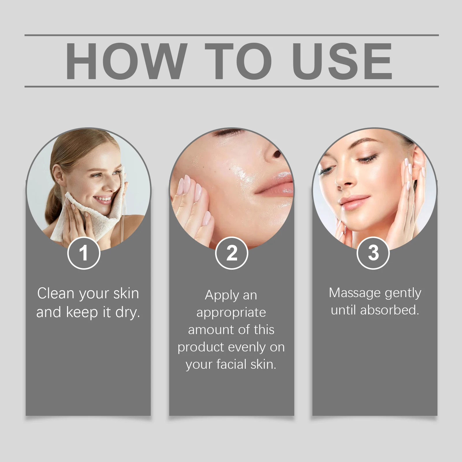 1.Clean your skin and keep it dry.2.Apply an appropriate amount of this product evenly on your facial skin.